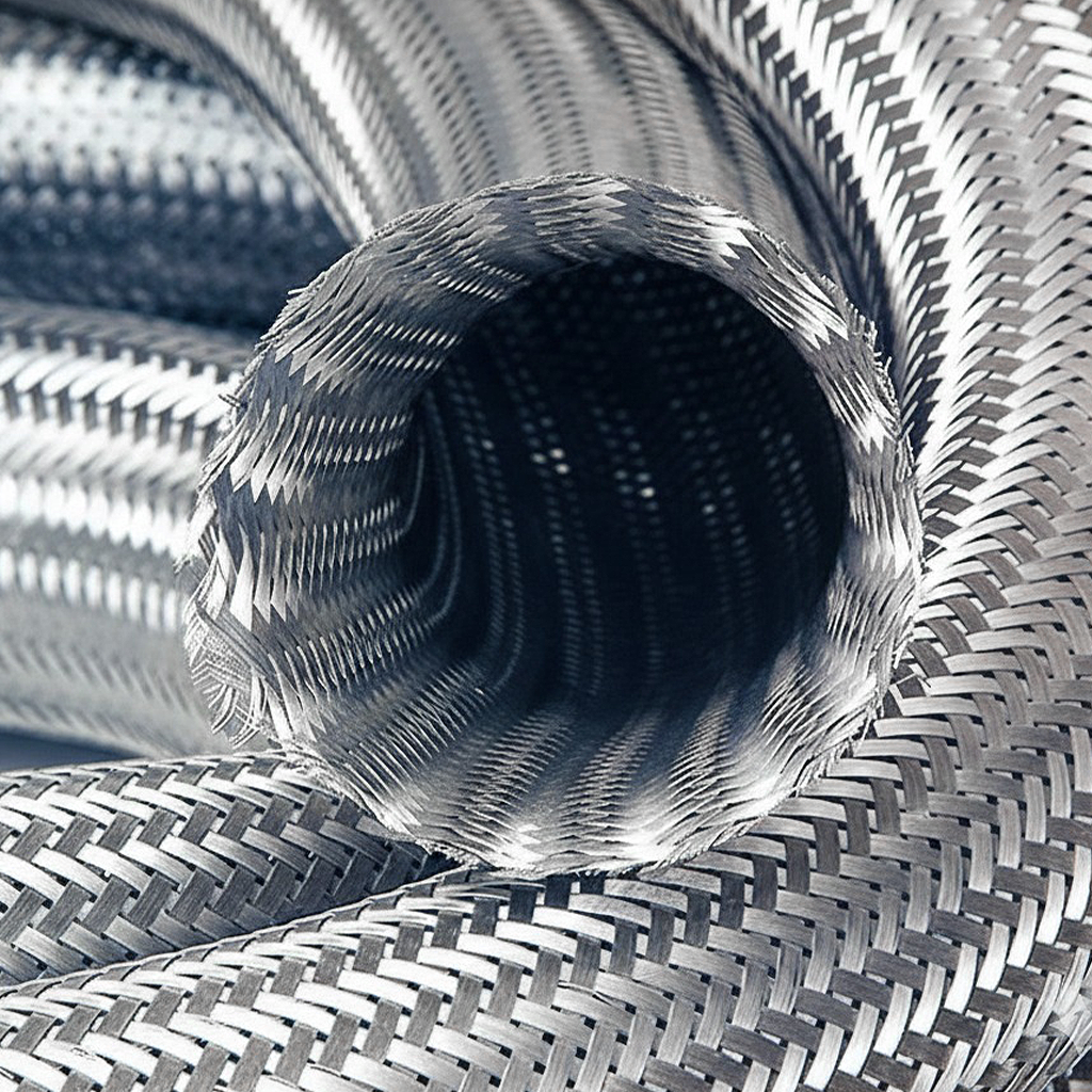 Malla de acero inoxidable AISI-304 para la protección de mangueras, tubos, cables, etc. resistente al calor, aceite, corrosión, abrasión, óxido y daño a la intemperie y a los animales.